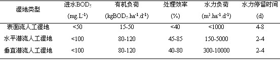 表1 小規(guī)模人工濕地設(shè)計(jì)參數(shù)