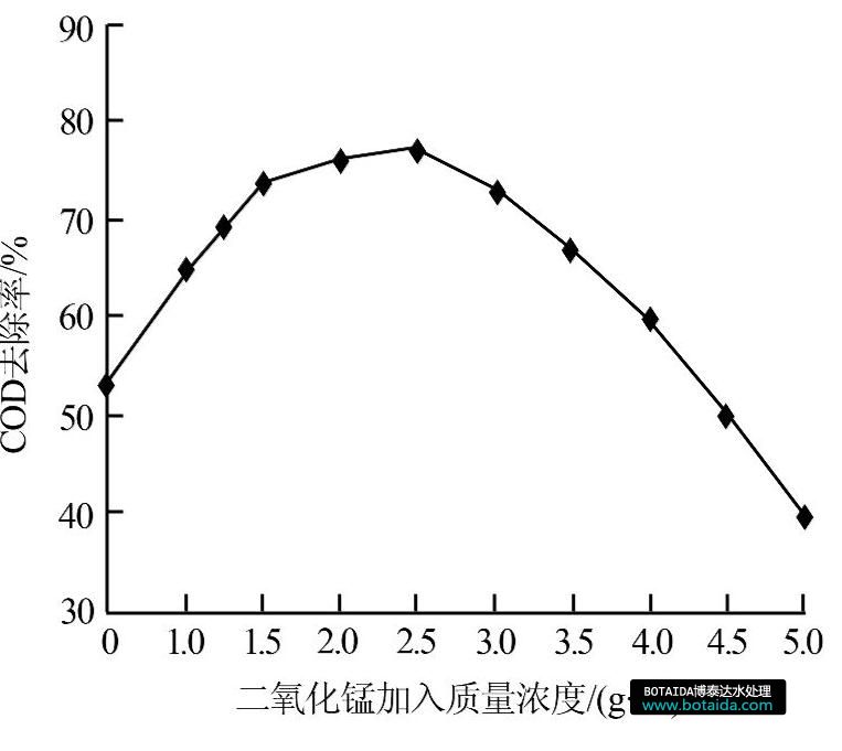 圖2 MnO2加入量對廢水COD去除率的影響