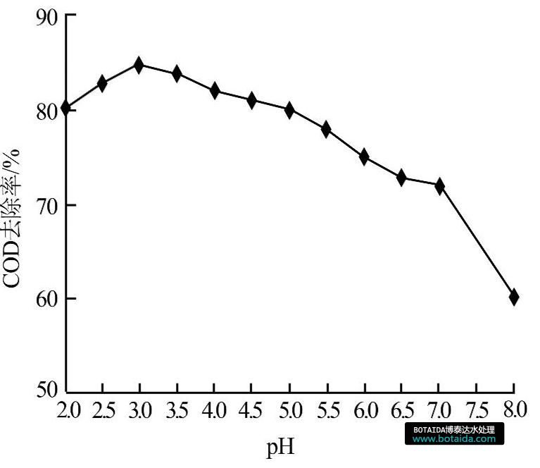 圖4 pH對廢水COD去除率的影響