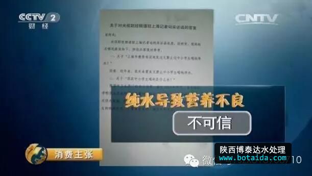 CCTV《消費(fèi)主張》欄目,辟謠『喝純水會導(dǎo)致營養(yǎng)不良』。北京世紀(jì)壇醫(yī)院副院長指出:“人體內(nèi)營養(yǎng)均衡不可能指望水里的那點(diǎn)成分。我們平常的營養(yǎng),靠水來供應(yīng)的話,非常非常少,所以說,如果說長期喝純凈水,引起營養(yǎng)不良,那跟喝水一點(diǎn)關(guān)系也沒有。”