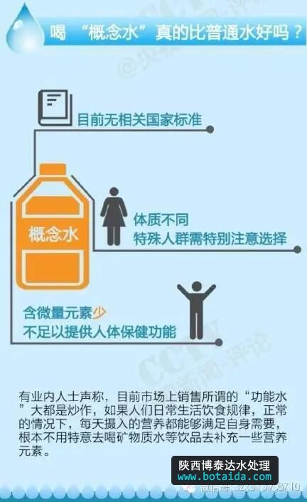 “概念水”含微量元素少,不足以提供人體保健功能。正常的情況下,每天攝入的營養(yǎng)都能夠滿足自身需要,根本不用特意去喝礦物質(zhì)水等飲品去補(bǔ)充一些營養(yǎng)元素。水只是新陳代謝的搬運(yùn)工,不必過多擔(dān)心純凈水會影響健康,飲水安全就好。