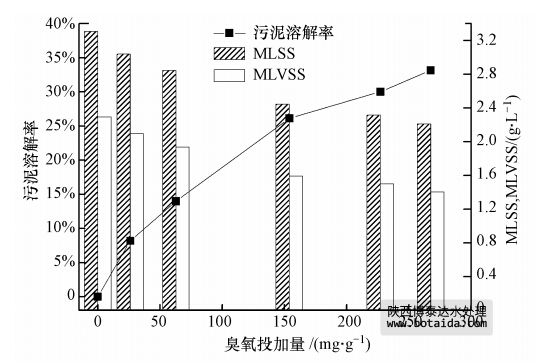 式中,[MLSS]o和[MLSS]t表示未經(jīng)臭氧處理及經(jīng)臭氧處理t時后污泥的MLSS(mg · L-1).