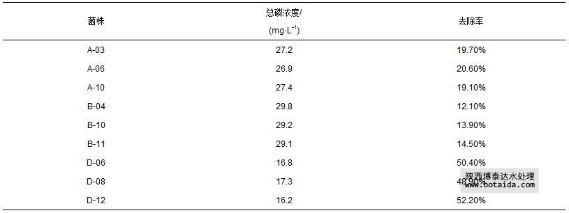 隨后,對EA、EB和ED共9株聚磷菌進(jìn)行復(fù)篩實驗. 分別缺磷培養(yǎng)12 h后,轉(zhuǎn)接于富磷培養(yǎng)基中繼續(xù)培養(yǎng)24 h,測定除磷率,結(jié)果如表 1所示. 可知,ED-12對磷的去除能力最強(qiáng),可達(dá)52.2%,因此,選擇菌株ED-12作進(jìn)一步研究.