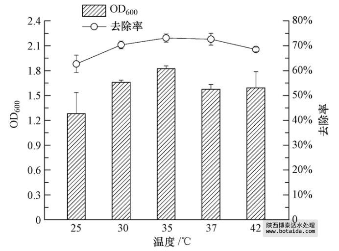 3.3.5 不同溫度對菌株ED-12的生長及除磷能力的影響