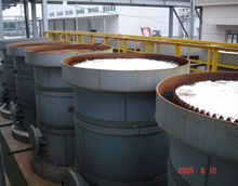 催化微電解是在不通電的情況下,利用微電解設備中填充的微電解填料產(chǎn)生“原電池”效應對廢水進行處理。當通水后,在設備內(nèi)會形成無數(shù)的電位差達1.2V 的“原電池”。“原電池”以廢水做電解質(zhì),通過放電形成電流對廢水進行電解氧化和還原處理,以達到降解有機污染物的目的。在處理過程中產(chǎn)生的新生態(tài)[.O H] 、[H] 、[O]、Fe2+ 、Fe3+等能與廢水中的許多組分發(fā)生氧化還原反應,比如能破壞有色廢水中的有色物質(zhì)的發(fā)色基團或助色基團,甚至斷鏈,達到降解脫色的作用;生成的Fe2+ 進一步氧化成Fe3 +,它們的水合物具有較強的吸附- 絮凝活性,特別是在加堿調(diào)pH 值后生成氫氧化亞鐵和氫氧化鐵膠體絮凝劑,它們的絮凝能力遠遠高于一般藥劑水解得到的氫氧化鐵膠體,能大量絮凝水體中分散的微小顆粒、金屬粒子及有機大分子。該工藝具有適用范圍廣、處理效果好、成本低廉、處理時間短、操作維護方便、電力消耗低等優(yōu)點,可廣泛應用于工業(yè)廢水的預處理和深度處理中。應用廢水種類:染料廢水、焦化廢水、醫(yī)藥廢水、農(nóng)藥廢水、樹脂廢水、助劑廢水、制革廢水、電鍍廢水、造紙廢水、淀粉廢水、大蒜廢水、垃圾滲濾液等工業(yè)類廢水。